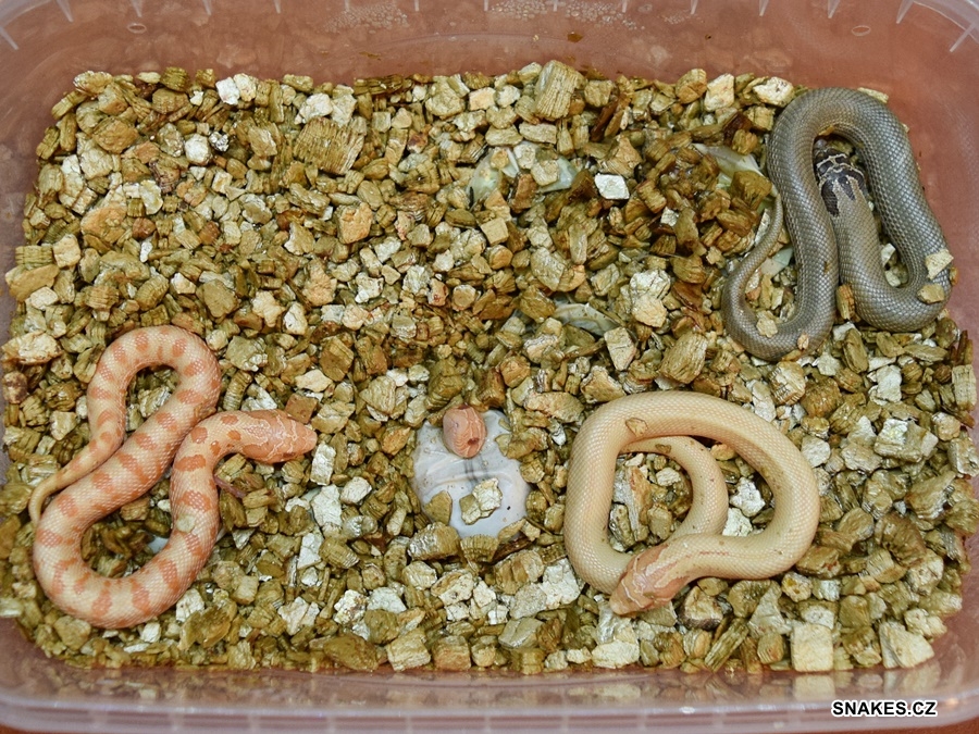 CORAL CONDA, CORAL, ALBINO CONDA hetero Lavender, ALBINO hetero Lavender NZ 8/2024. Potomstvo pochází z páření PARADOX CORAL X ALBINO CONDA a PARADOX CORAL X ALBINO CONDA hetero Lavender.