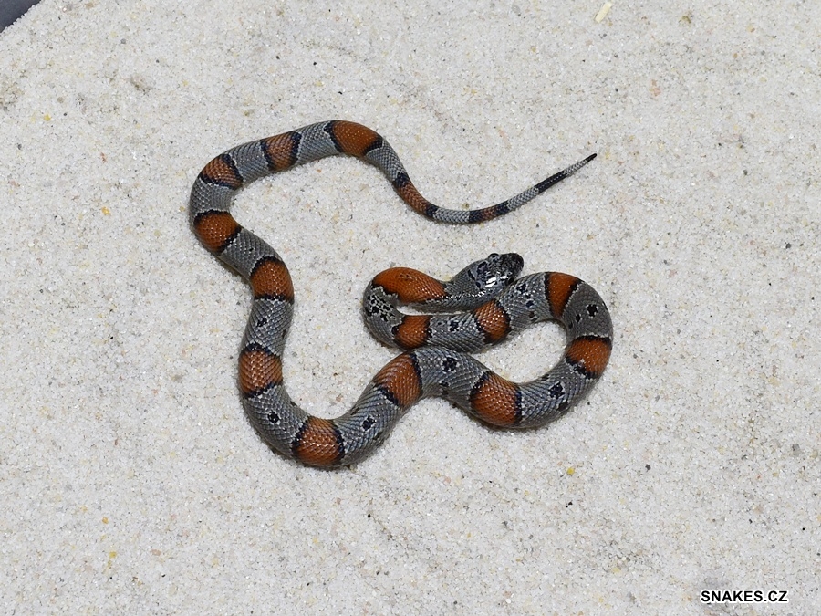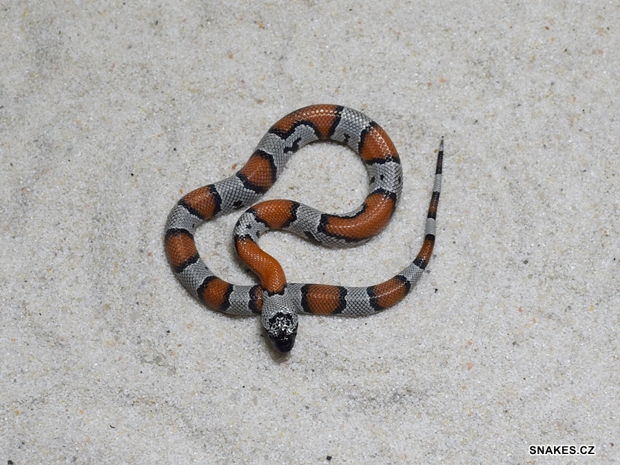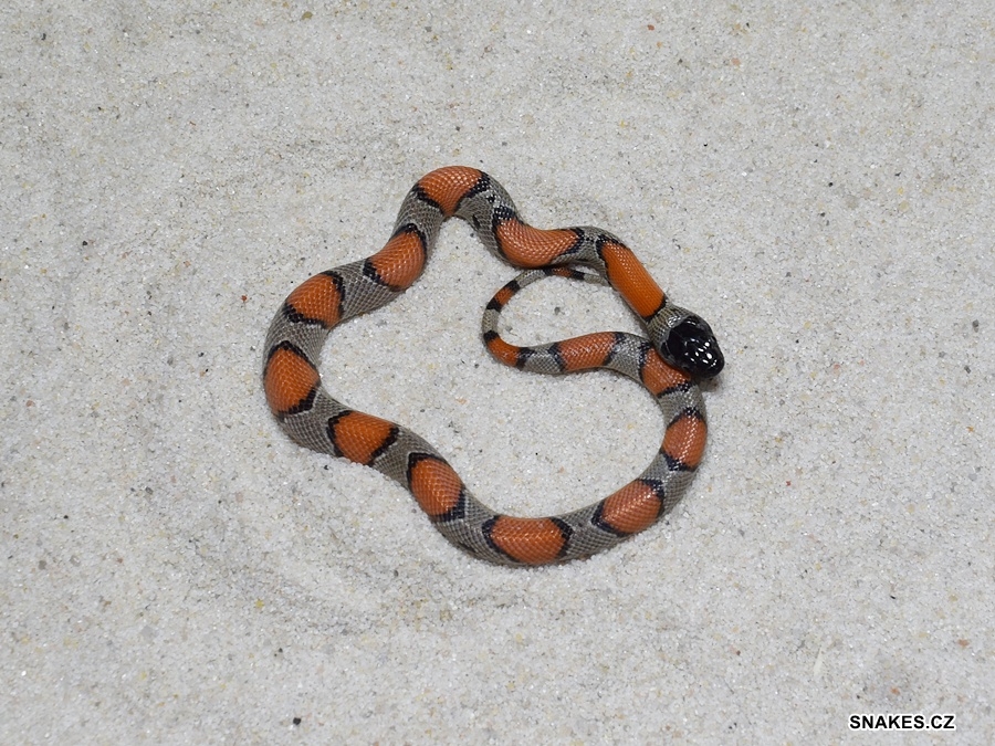 Hetero SENTZ HYPO 50% poss.hetero Applegate phase Lampropeltis p. pyromelana NZ 8/2025. Mláďata pocházejí z páření SENTZ HYPO X hetero Applegate phase L.p.pyromelana.