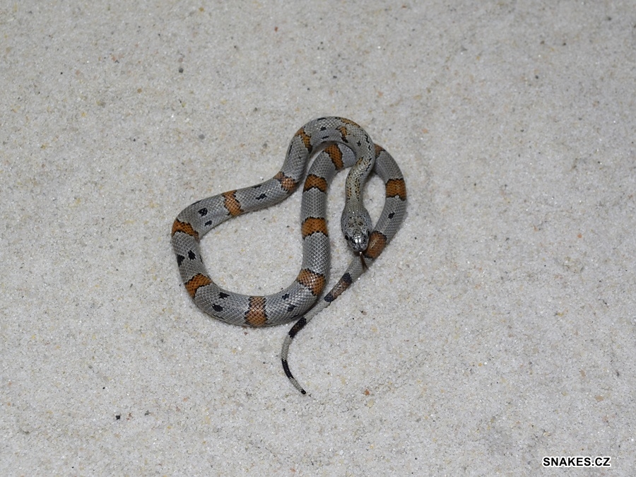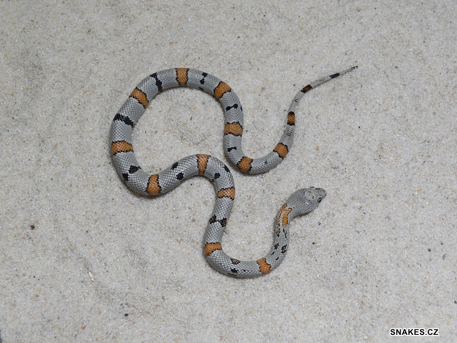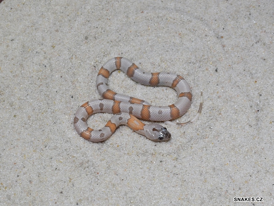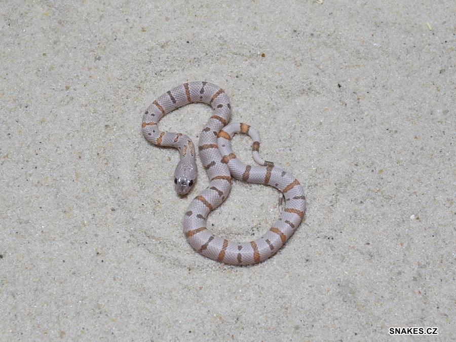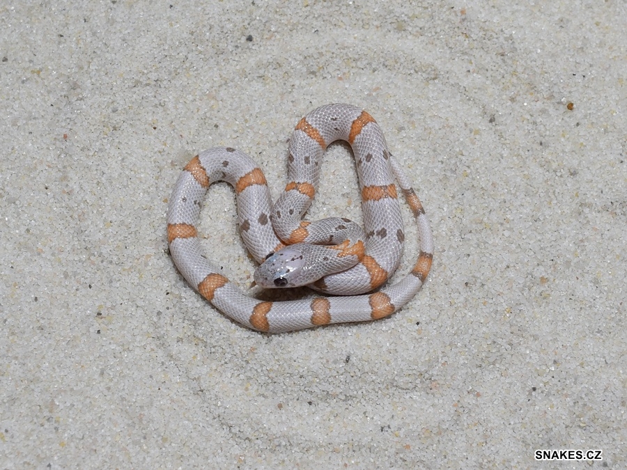 ALBINO, hetero Albino STRIPED / SPLOTCHED Lampropeltis tr. nelsoni NZ 8/2025. Mláďata pocházejí z páření ALBINO STRIPED X triple hetero