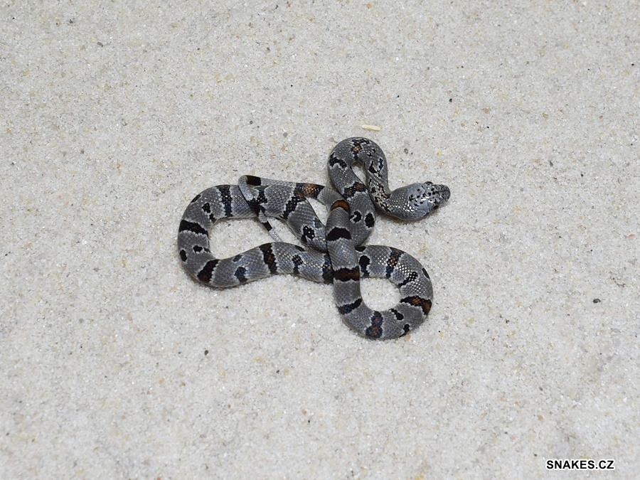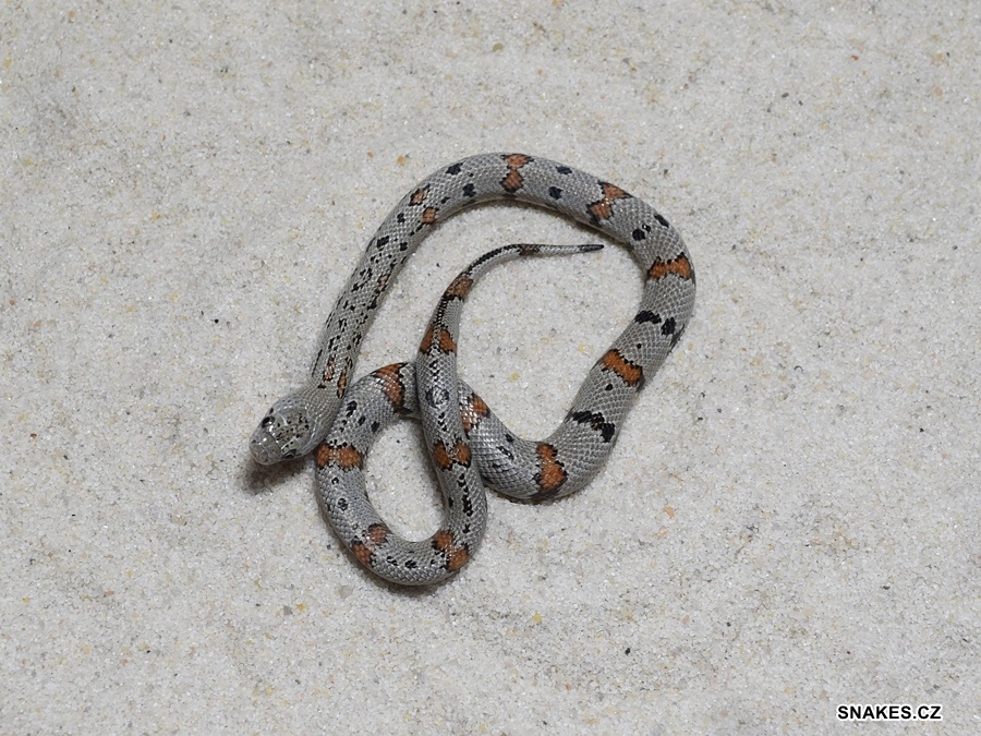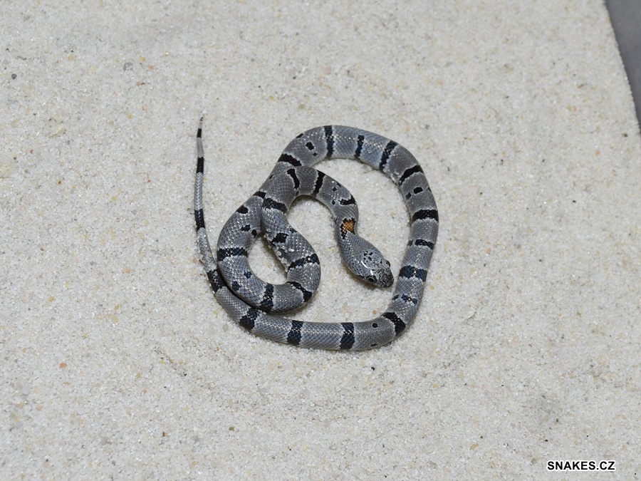 LEUCISTIC, hetero Leucistic Lampropeltis a. blairi NZ 8/2025. Mláďata pocházejí z páření Leucistic L.a.blairi X hetero leucistic L.a.alterna.